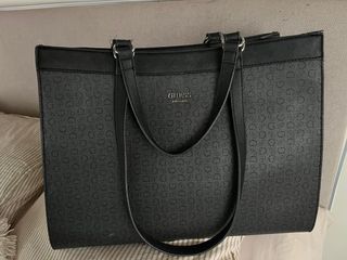 Elegante bolso Guess tipo maletín con un diseño clásico y el distintivo logo de la marca. - Acabado en color negro. - Detalle de logo GG en la parte frontal. - Cierre de cremallera. - Asas superiores. - Su estado se puede apreciar en los fotos. Foreo dwntro está manchado por esto este precio, pero no perjudica su uso. - mediodas 30x20x15