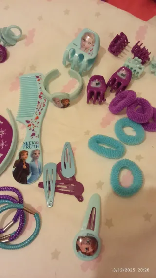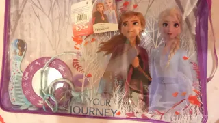 Maletín de la película Frozen II. - Diseño con los personajes de Anna y Elsa. - Incluye accesorios para el cabello como peine y espejo. - Cierre de cremallera. -nuevo sin estrenar