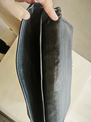 Bolso tipo maletín en color negro, ideal para llevar tu portátil y otros objetos. - Material: Polipiel. - Tiene 3 compartimentos, 2 con cremallera y 1 entre estos 2 sin cremallera. - Correa ajustable para llevar al hombro. Como nuevo!!!