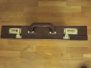 Bolso maletín acabado que imita la piel Forro rojo y compartimentos interiores. Muy buen estado, apenas utilizado.