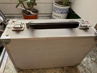Maletin de diseño moderno y funcional, ideal para transportar tus pertenencias con estilo , de aluminio ligero, lleva un pequeño espejo en el interior, ideal para maquillaje Medidas 25cm x 16cm x 10cm - Acabado metálico plateado. - Asa resistente para un agarre cómodo. - Cierres de seguridad. - Esquinas reforzadas para mayor durabilidad.