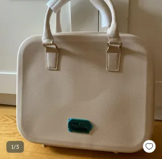 Maletín elegante y funcional para portátil. - Diseño moderno con bolsillo frontal. - Asas cómodas para llevar. - Incluye un charm de corazón. - Dos partes de cremallera y una parte central con pequeños bolsillos. Bolsillo exterior. - Solo tiene la pequeña mancha que se ve en la última foto.