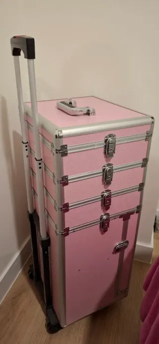 Maletín Peluquería/Maquillaje Rosa con Ruedas