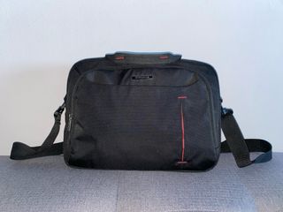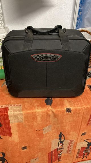 Maletín para portátil de color negro. Medidas aproximadas 41x33 cm, se puede ver en las fotos. Está en buenas condiciones a pesar de los años aunque lleva mucho tiempo guardado y sin usarse. Tiene algún pequeño roce y una mancha en el asa del hombro. El interior está muy bien. Puede ser para un portátil de 15 pulgadas.
