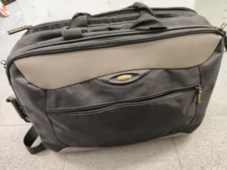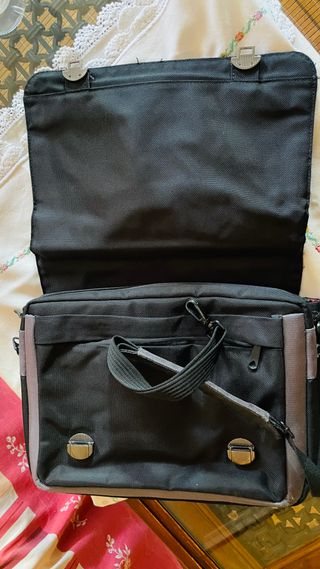 Maletín grande para portátil con un diseño reforzado. - Compartimento principal espacioso. - Correa de hombro ajustable y acolchada. - Asa de mano resistente. - Bolsillo frontal con cierre. Usado dos veces