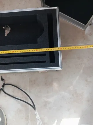 Maletín de aluminio con un diseño moderno y resistente. Ideal para transportar tus objetos de valor o herramientas. Viene con separadores para adaptarlo a tus necesidades y con una bandeja con bolsillos para llevarlo todo bien organizado. No tengo las llaves y tiene un par de desperfectos que se pueden ver en las últimas fotos. Medidas: 46,5 x 33,5 x 16 cm