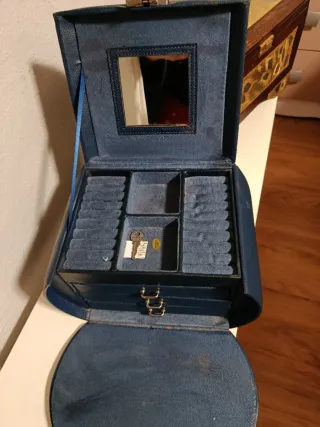 Joyero Maletín Antiguo Azul y Plateado