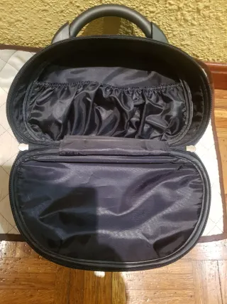 Neceser con asa movible. Interior con bolsillo forrado en raso negro, 22 ctms de alto,30 de alto,15 de fondo,nuevo,negro