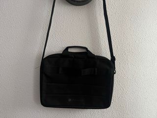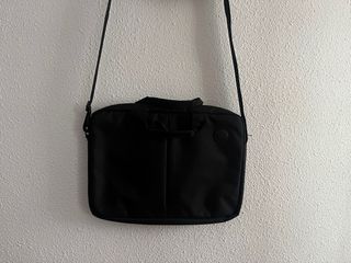 Maletín para ordenador portátil de la marca Dell. Con cinta bandolera, y cinta trasera para adosar en maleta. - Color negro. Medidas ancho 38 alto 31 fondo 7 No tiene etiqueta, pero no se ha usado nunca. - Compartimento principal espacioso. - Bolsillo frontal con cremallera. - Asa de mano y correa para hombro.