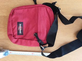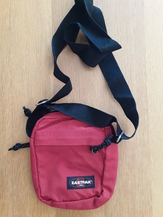Bandolera Eastpak con un diseño práctico y moderno. - Color rojo principal con detalles en negro. - Correa ajustable para mayor comodidad.