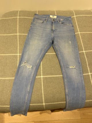 Tejanos de corte pitillo con un estilo desgastado y moderno. Son cómodos y versátiles. - Diseño con rotos en las rodillas. - Tiro medio. - Pierna ajustada.