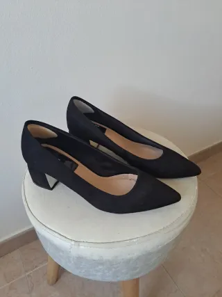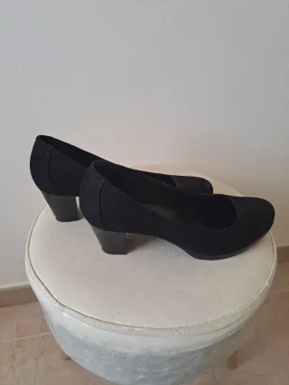 Elegantes zapatos de tacón negros. - Material exterior de ante. - Diseño clásico y versátil.