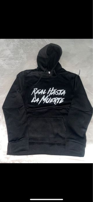 Se venden dos sudaderas con el diseño Real Hasta La Muerte de Anuel AA. - Talla única. - Diseño estampado en blanco.