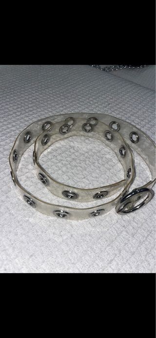 Cinturón transparente con ojales plateados