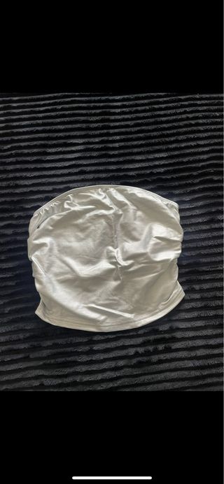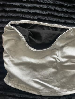 Top brillante con un acabado metálico, perfecto para eventos o fiestas. - Diseño sin tirantes. - Forro interior negro.