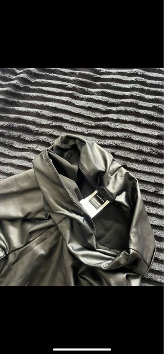 Pantalones negros de corte ajustado. - Diseño moderno. - Material de alta calidad cuero. La parte trasera esta un poco desgastada.