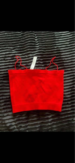 Top de tirantes en color rojo. - Diseño de tejido acanalado. - Tirantes finos ajustables. - Bajo elástico.