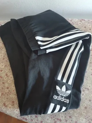 Mallas deportivas de Adidas para mujer. - Diseño con tres rayas laterales. - Logo de Adidas en la pierna. - Algodón. - Talla S - Sin haber sido usadas nunca