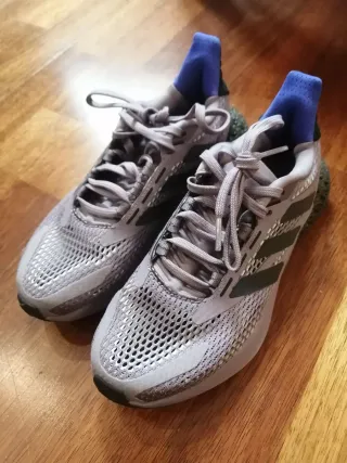 Zapatillas deportivas Adidas con un diseño moderno y llamativo. - Parte superior de malla transpirable. - Detalle de las tres bandas. - Suela con tecnología 4D. Usadas una ves solamente, están como nuevas. No me quedaron.