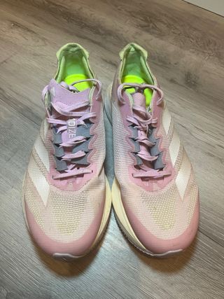 Zapatillas deportivas Adidas Adizero en talla 40. Diseñadas para ofrecer comodidad y rendimiento. - Parte superior de malla transpirable. - Detalle de las tres rayas icónicas de Adidas. - Cierre con cordones para un ajuste seguro. Las vendo porque tienen placa y me resultan un poco duras para mi pie. las he usado un par de veces solamente.