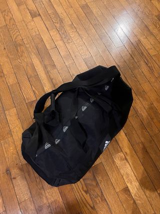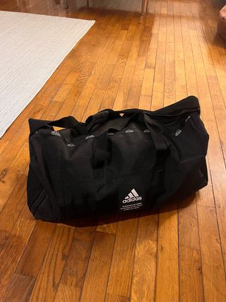 Bolso de deporte Adidas en color negro. Perfecto para llevar tu equipación o para viajes cortos. - Diseño moderno y funcional. - Asas resistentes para un transporte cómodo. - Compartimento principal espacioso. Dimensiones: 65 cm x 33 cm x 33 cm Capacidad: 69 litros. Tejido principal: tejido técnico exterior 100% nailon y tejido técnico interior 100% TPE Base: 100% poliéster reciclado y 100% TPE laminado Bolsillo lateral con cremallera y bolsillo lateral de malla sin cierre Compartimento ventilado para el calzado con cierre de cremallera Correa extraíble, ajustable y acolchada para el hombro