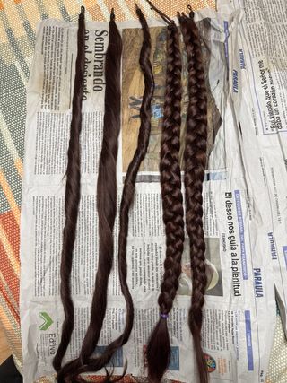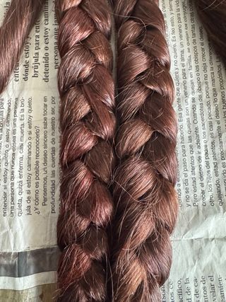 Dos mallas de fallera de cabello natural nuevas. - Color castaño oscuro. - Longitud aprox 82 cm cada una. -Cualquier duda pregúntame. -Articulo sin devolución