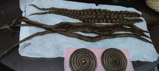 Mallas de pelo para moño de fallera. Es de un moño que descosí. - Color castaño oscuro casi negro. - Rodetes 20€