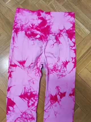 Mallas deportivas con un llamativo diseño tie-dye. - Patrón de teñido anudado en tonos rosas. - Cintura elástica para un ajuste cómodo. - Estiliza mucho.