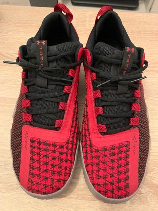 Zapatillas de entrenamiento, zapatillas deportivas Under Armour TriBase Reign 6 en talla 45. Combinan un diseño llamativo en rojo y negro. - Parte superior con malla transpirable. - Suela con tecnología TriBase para mayor estabilidad. - Cierre de cordones. - Detalle de logo en el lateral.