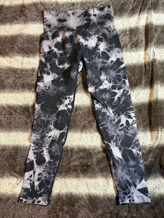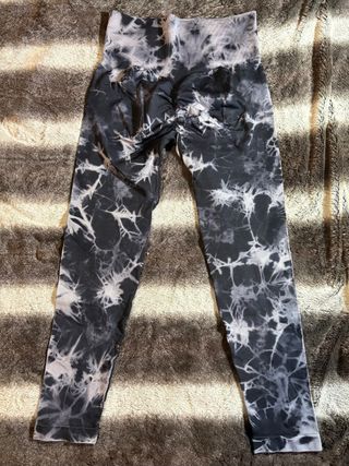 Mallas ajustadas con un llamativo diseño tie-dye. - Cintura alta. - Detalle fruncido en la parte trasera. - Tejido elástico.