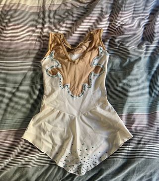 Maillot patinaje artístico beige y blanco