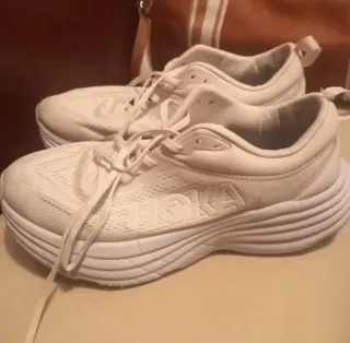 Zapatillas HOKA ONE ONE Bondi 8, color marrón oliva, talla 38 EU (US 6.5 / UK 5.5). Modelo icónico de la marca con máxima amortiguación y suela ultra ligera, diseñadas para ofrecer comodidad y soporte en largas caminatas o entrenamientos. 🟤 Detalles: • Talla: 38 EU • Amortiguación HOKA característica • Muy cómodas y ligeras • Presentan signos de uso y un pequeño roto en la malla delantera (ver última foto) • Suela y plantilla en buen estado 💬 Acepto ofertas razonables. 📦 Envío rápido y bien protegido