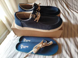 Zapatillas barefoot azules y beige