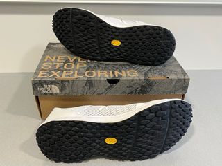 Zapatillas The North Face LITEWAVE FLOW LACE Talla 42,5 (27,5 cm) Blancas Tienen suela Vibram. - Muy ligeras - Malla transpirable de secado rapido - Apoyo acolchado de la entresuela de EVA Cradle™ GUIDE de doble densidad - Plantilla OrthoLite® - La suela exterior Vibram® XS Trek garantiza un agarre firme