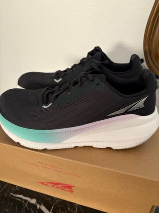 Zapatillas deportivas Altra FWD VIA talla 40,5. - Parte superior de malla transpirable. - Mediasuela con amortiguación. - Puntera Ancha - Drop 4mm - Suela de goma duradera. - Detalle de color degradado en la mediasuela. Se venden con caja original por equivocación de talla, usadas solo una vez (ni 5km).