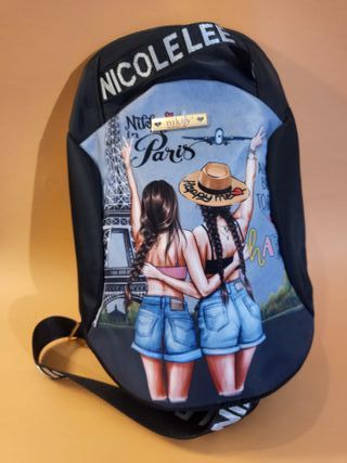 Fabricada en Nylon y respaldo de malla alveolar. Correa ajustable y desmontable. Cierre de cremallera principal. Placa de identificación con logotipo grabado y tiradores de cremallera. Anillos en D para fijación de correa en la espalda. 2 bolsillos interiores traseros. Bolsillo interior frontal con cremallera. Bolsillo interior de malla inferior. Bolsillo lateral interior con cremallera con cable USB incorporado que se conecta al puerto USB externo. Correa de hombro ajustable de 32" - 41" pulgadas Tamaño: 9 pulgadas de largo x 4,5 pulgadas de ancho x 13 pulgadas de alto.