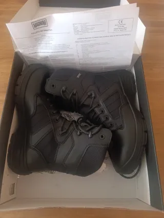 Botas tácticas Magnum Fox 8.0 en color negro. - Diseño robusto y funcional. - Cierre con cordones. - Paneles de malla para transpirabilidad.