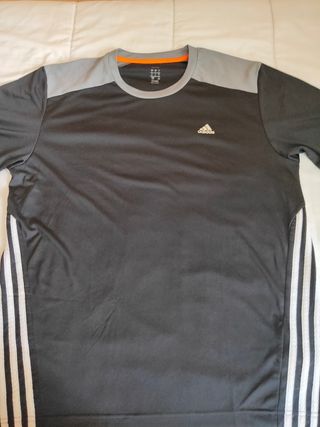 Camiseta deportiva de manga corta para hombre. - Diseño con paneles de malla en los hombros. - Tres rayas distintivas en los laterales. - Logo de Adidas en el pecho.