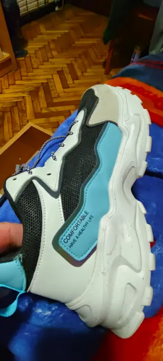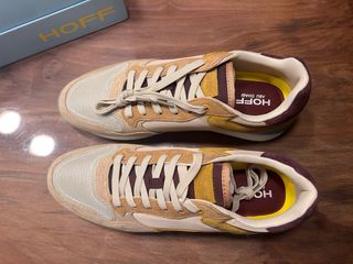 Zapatillas de la marca HOFF en talla 43. Combinan varios colores para un look moderno. - Diseño con paneles en ante y malla. - Cordones blancos. - Suela de goma. Sin estrenar. Se conserva caja y etiquetas.