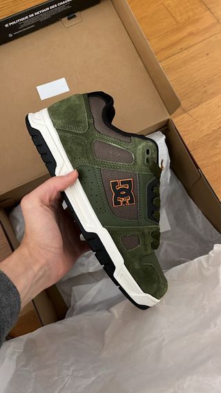 Zapatillas DC Shoes modelo Stag en color verde con detalles naranjas. Talla 42.5. - Diseño inspirado en el skateboarding. - Combinación de ante y malla. - Suela de goma adherente.