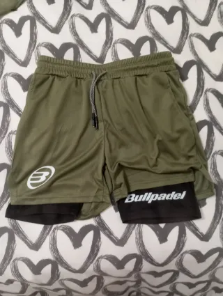 Pantalón corto deportivo de color caqui con diseño de doble capa. - Tejido de malla transpirable. - Cintura elástica con cordón. - Logo de Bullpadel en blanco. - Banda inferior con logo de Bullpadel.