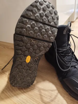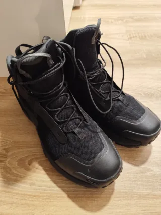 Botas de caña media Under Armour Valsetz en color negro. Diseñadas para ofrecer comodidad y soporte. - Material exterior de malla transpirable. - Suela Vibram para un agarre óptimo. - Cierre con cordones. - Caña media para mayor comodidad. Usadas 10-12 días. Se venden porque me vienen grandes. Son muy cómodas. Como tengo plantillas personalizadas, las plantillas están a estrenar.