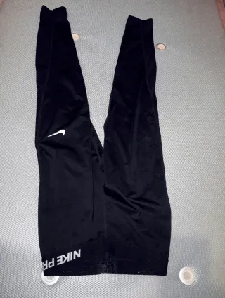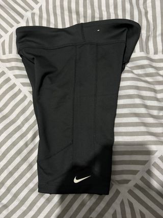 Mallas deportivas Nike . Por debajo de la rodilla. Negra y roja. Material técnico que evacua el sudor y no marca el sudor. Muy chulas y en buen estado. La goma de la cintura se cambió por una más ancha y no se nota. No aprieta la barriguita. Cómodas y suaves. Más cosas bonitas en mi armario. - Paneles laterales en contraste.