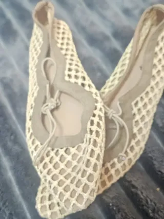 Elegantes zapatos tipo bailarina para mujer con un diseño de malla. - Color beige. - Material exterior de malla. - Cierre con cordón.