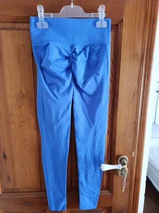 Leggings o mallas deportivas de color azul eléctrico, perfectas para entrenar. Están en perfecto estado. Solo usados para probarlos. Muy cómodos de llevar. Regalo pantalón chándal de Stradivarius, talla S, en buen estado. - Cintura alta con tejido acanalado. - Costuras reforzadas. - azul eléctrico.