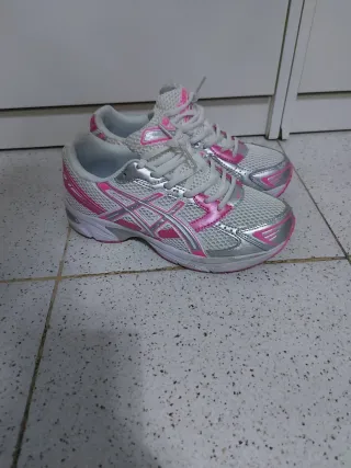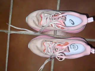 Zapatillas deportivas Asics en color rosa. Diseñadas para ofrecer comodidad y estilo. -solo me las puse una vez. Me costaron 150€ - Parte superior de malla transpirable. - Suela de goma para mayor tracción. - Cierre de cordones ajustable.