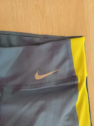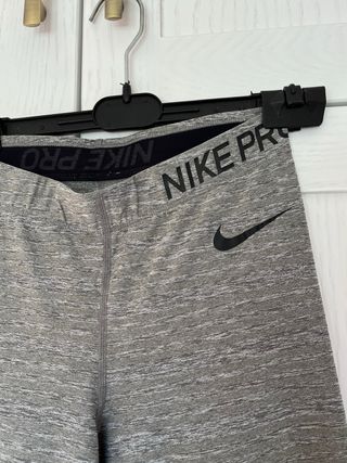 Mallas capri de la marca Nike en color gris. Perfectas para entrenar o para el día a día. - Tejido cómodo y transpirable. - Cintura elástica para un mejor ajuste. - Logo de Nike visible.