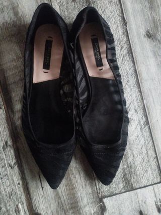 Elegantes zapatos planos de Zara con un diseño de malla. - Diseño de punta afilada. - Detalle de estampado de cebra en la malla. - Etiqueta interior Zara Basic Collection.