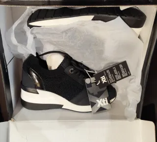 Zapatillas deportivas Xti con cuña. - Diseño moderno y cómodo. - Cierre de cordones. - Material exterior de malla y sintético. - altura tacón 7cm Completamente nuevas las vendo con su caja original.