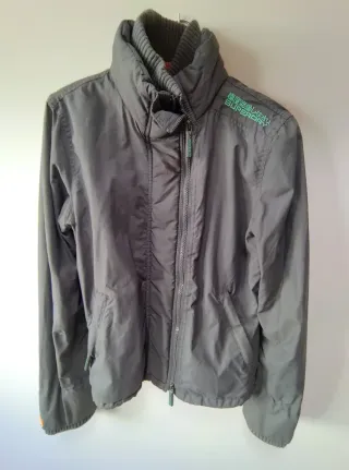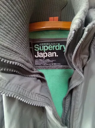 Chaqueta cortavientos de color gris, de la marca Superdry, modelo Japan. - Diseño con triple cremallera frontal ( muy original) - Cuello alto con detalle de canalé. - Revestimiento interior de malla color verde. -puños ajustibles. -bolsillos laterales.